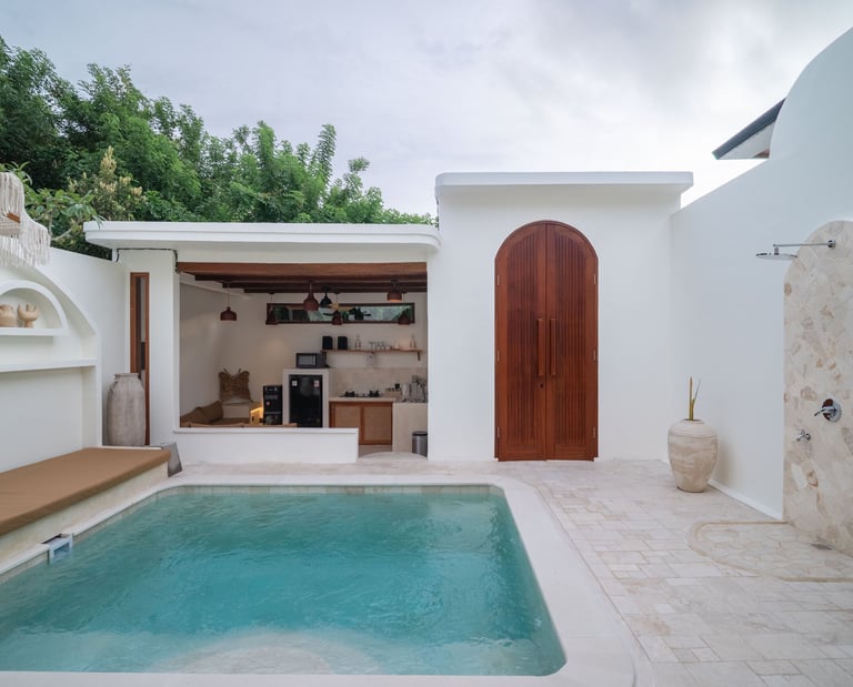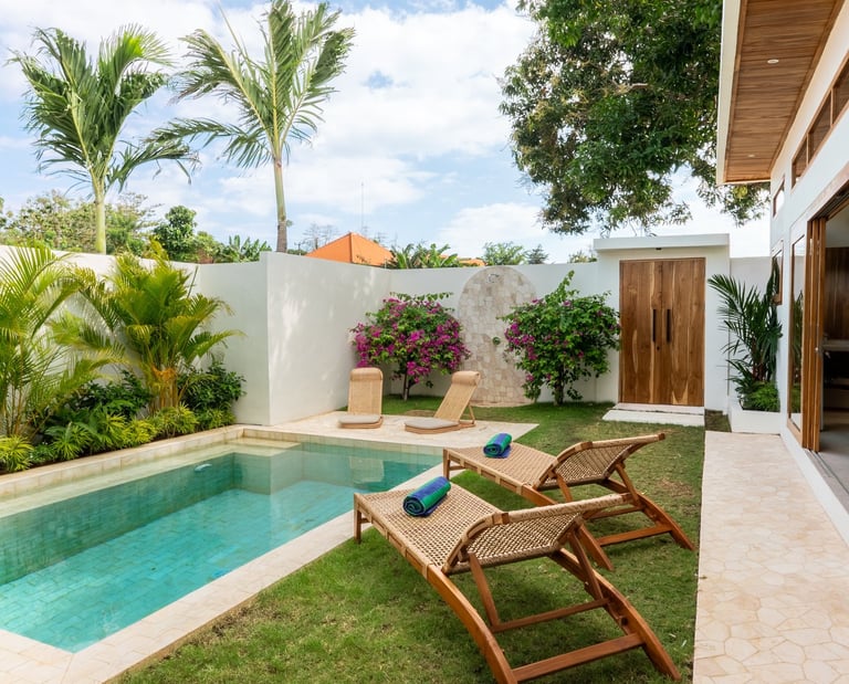 Located in Bukit, Uluwatu, Villa Malù is bright private villa with 2-bedroom, featuring a pool, enclosed living area, and fully equipped kitchen. Designed for comfort and privacy, it offers two bathrooms, air-conditioned bedrooms, and a seamless indoor-outdoor layout.